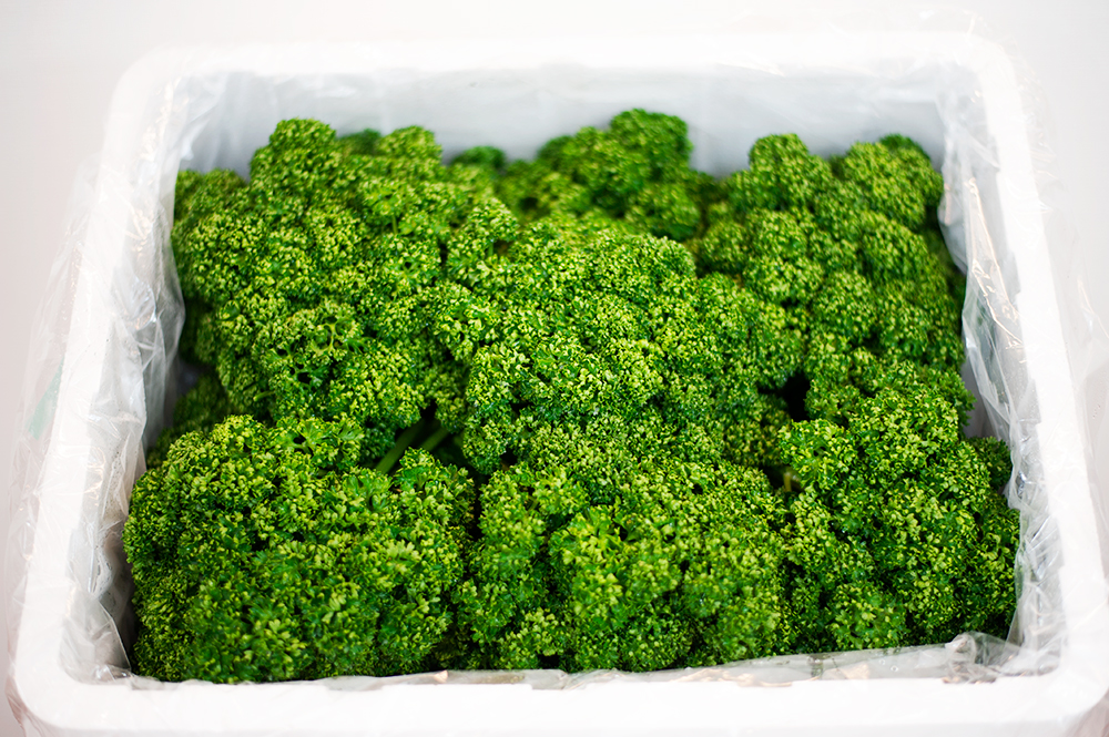 中原温室の大葉とパセリは周年で出荷できるようにしています。大葉に関しては熊本市内での周年栽培が可能なのですが、パセリに関しては、夏場にどうしても品質が下がってしまいます。パセリが作りづらい時期に無理やり品質の悪いものを生産したくないという思いから、夏場は環境の良い阿蘇の南小国でパセリを生産しています。普段は熊本市内、夏場は阿蘇といように生産する場所を移動するリレー栽培により、周年で出荷できる体制を整えています。